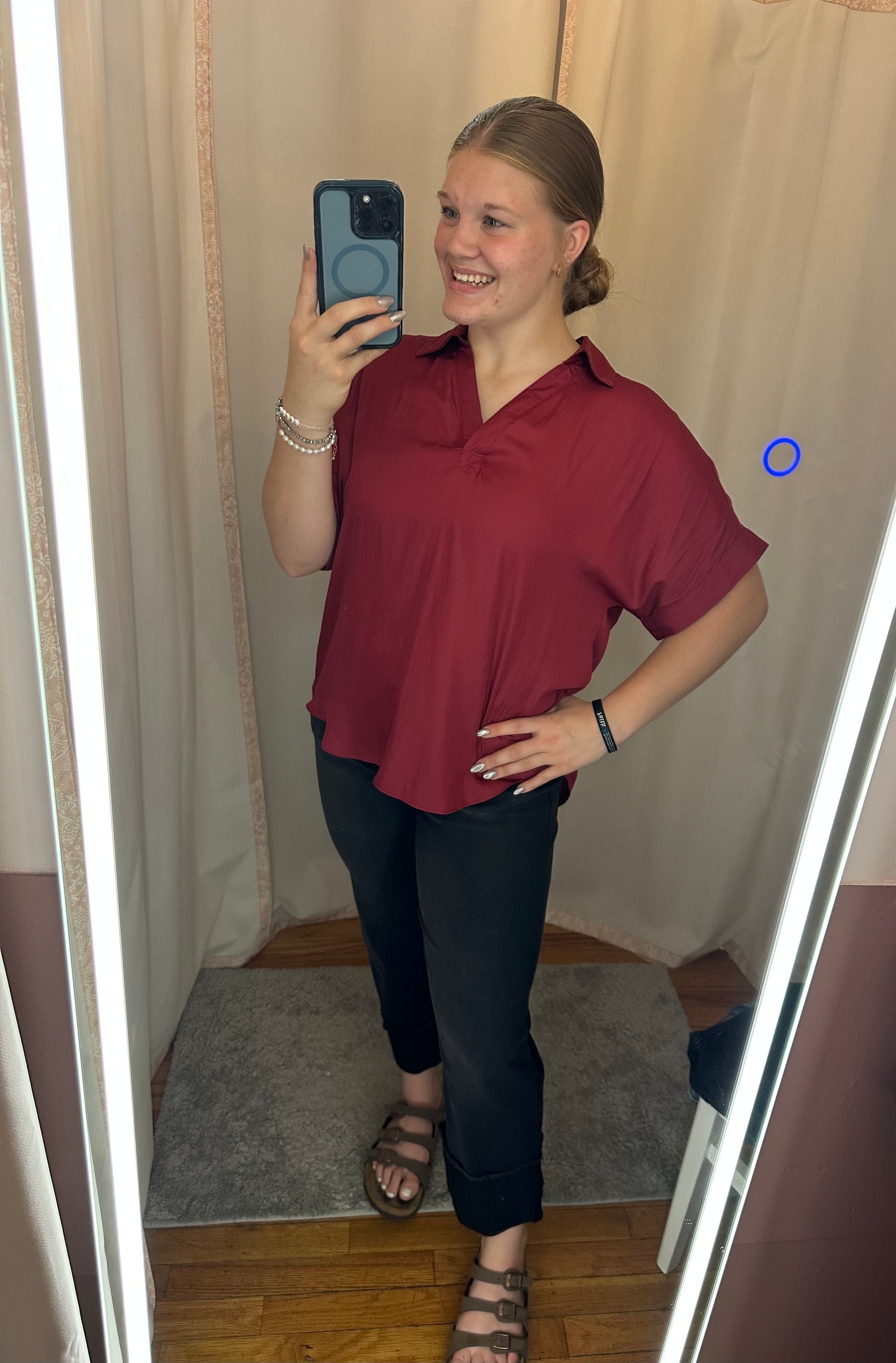 BLACK ROLL CUFF STRAIGHT LEG JEAN