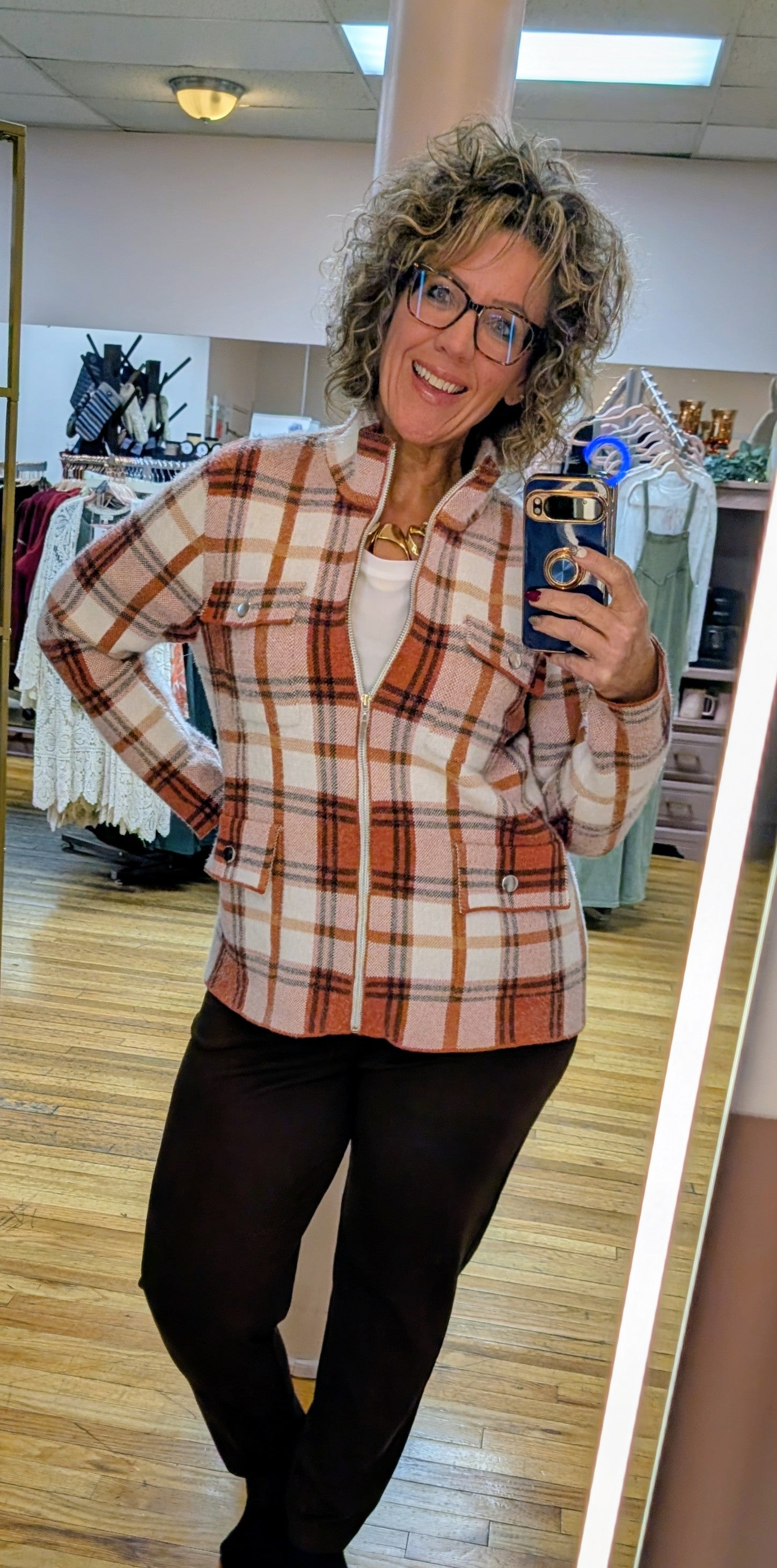 SASHA SPICE PLAID ZIP UP SOFT JACKET