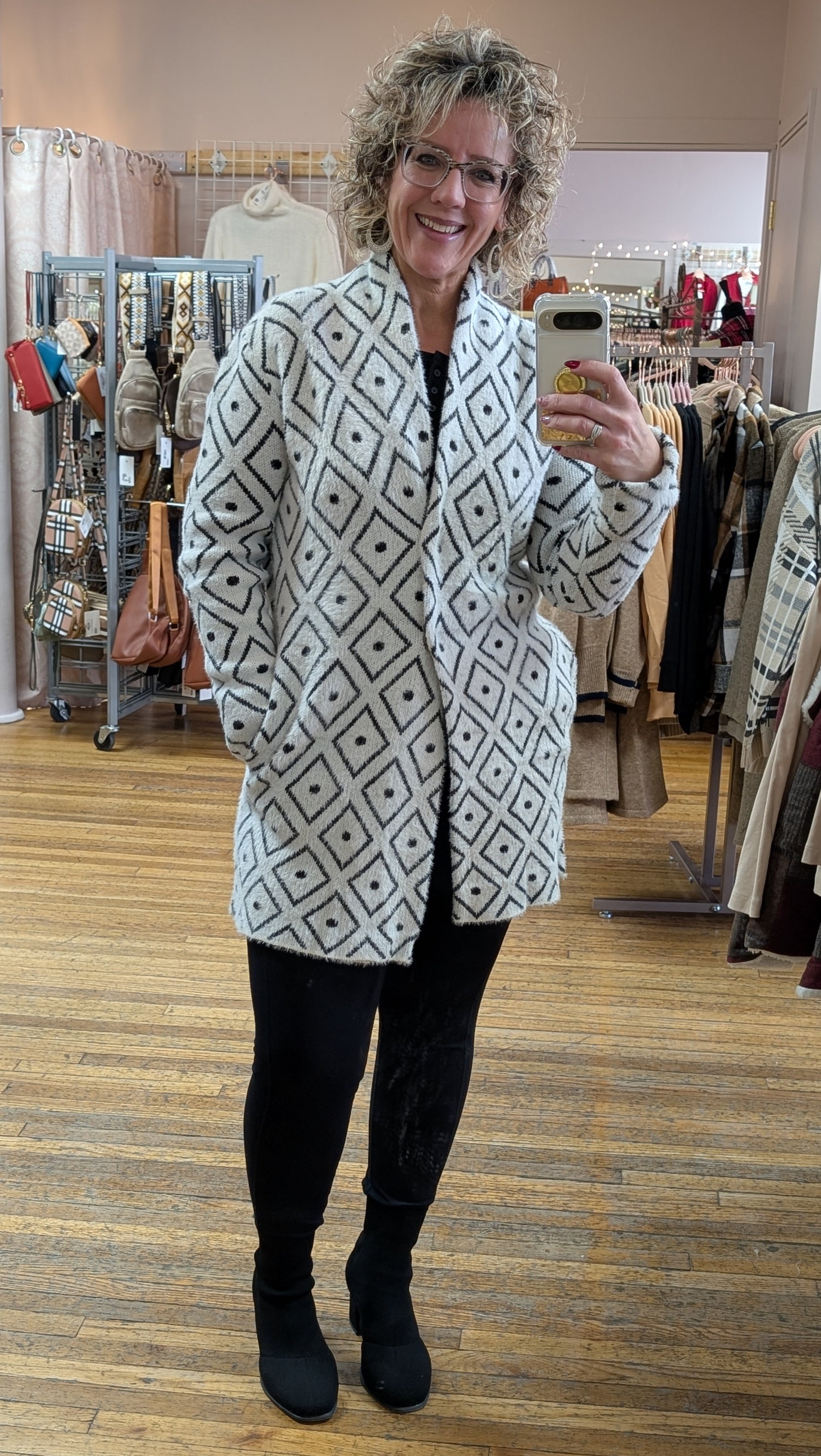 WHITE/BLACK DIAMOND COATIGAN