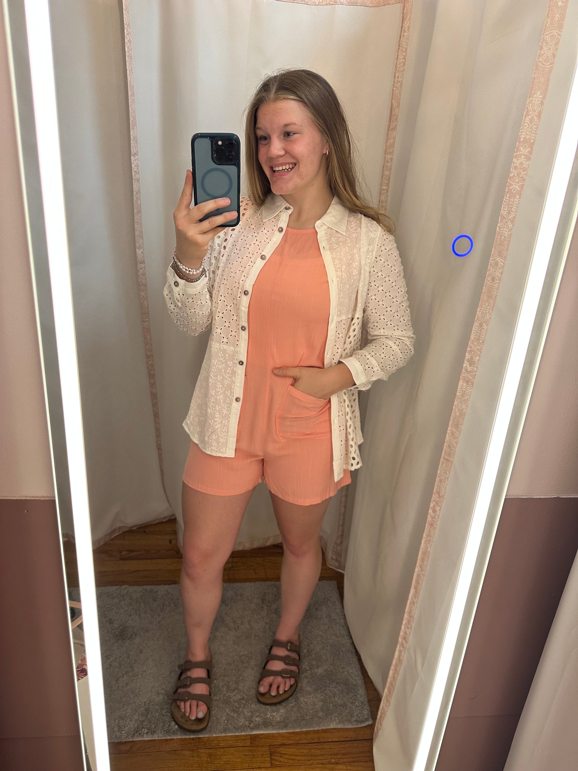 WHITE OPEN HOLE AND FLORAL KNITTED PRINT BLOUSE