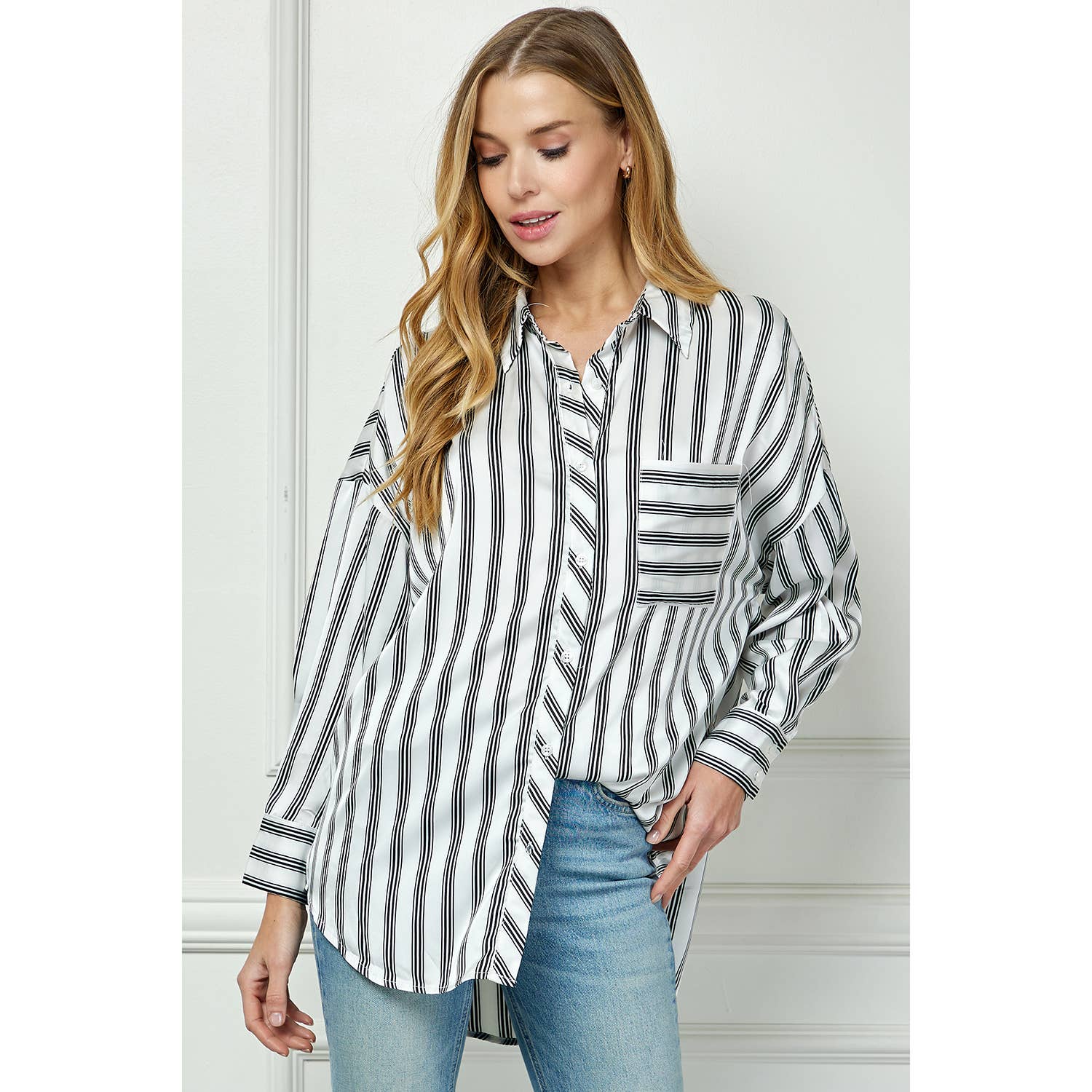 LUXE SATIN BOYFRIEND SHIRT: BLKIV